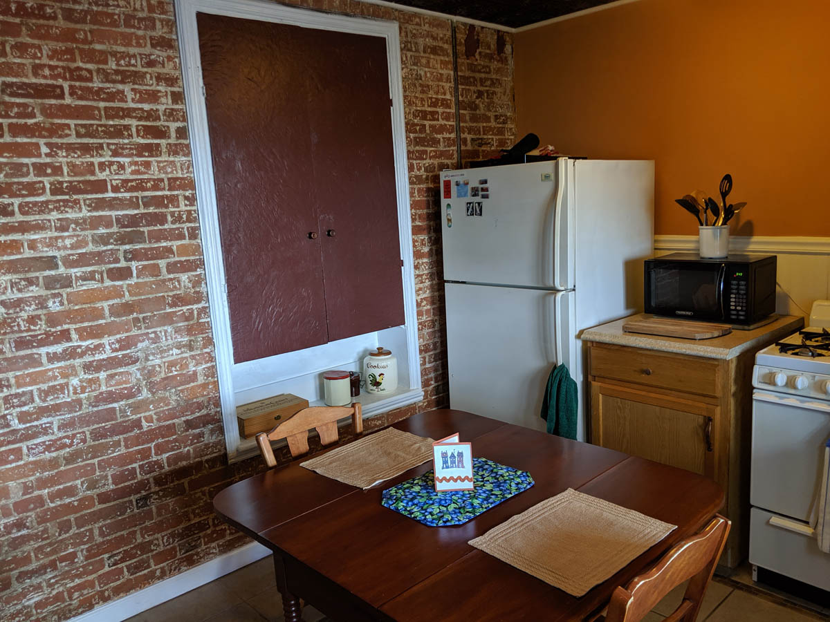 Gas heating and stove, your own thermostat and electric meter, cable television/internet hookup. Tenant pays gas/electric and landlord provides snow removal, water/sewer, trash, and recycling. Ample street parking and a walking path to the (free) municipal lot behind the building.